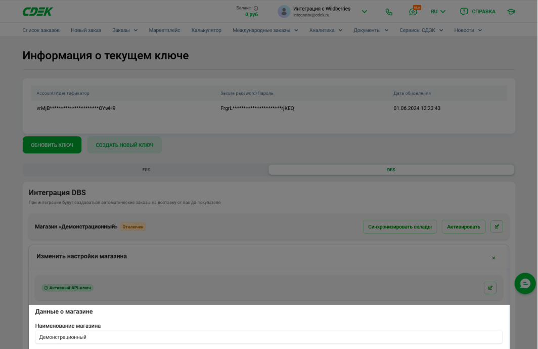 Активация интеграции станет доступна только после полной настройки магазина и хотя-бы одного склада.